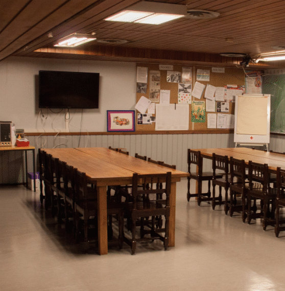 Alakerran kerhohuoneella pidetään nuoriso- ja hälytysosaston harjoitusten teoriaosuudet sekä pienimuotoiset sisällä toteutettavissa olevat käytännön harjoitukset.